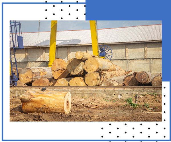 At our log yard, we have invested in state-of-the-art equipment including a 40-tonne overhead crane